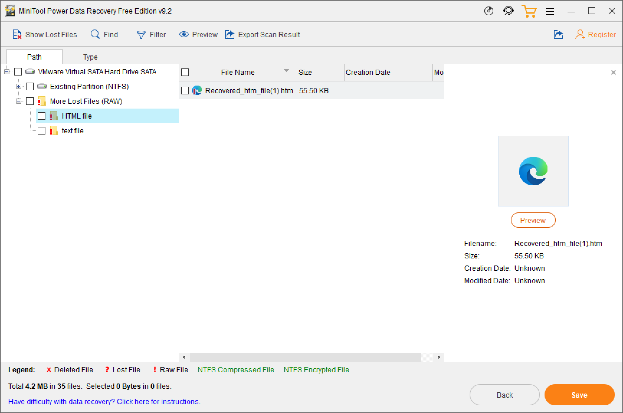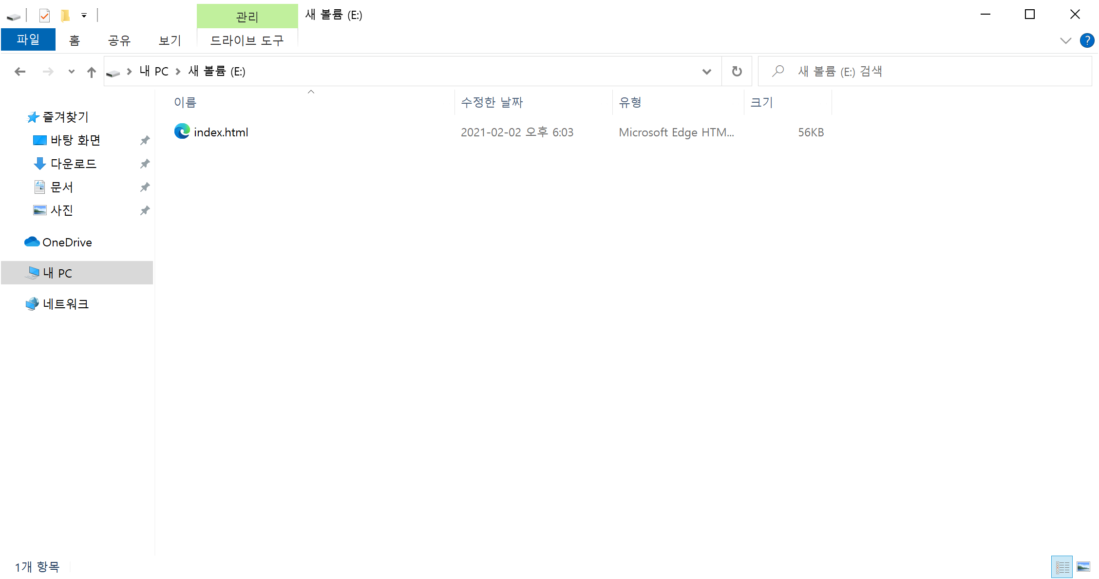 다행히 지워진 파일을 찾았다. 하지만 파일 이름을 인식하지 못한다. 뿐만 아니라 확장자 또한 html이 아닌 htm으로 되어 있다. 파일 내용에 따라 형식을 추론하기 때문이다. 파일 구조 가 명세 된 파일은 포맷에 관련 되어 있기 때문에 포맷을 복구하는 프로그램이 아니라면 인식하기 어렵다.