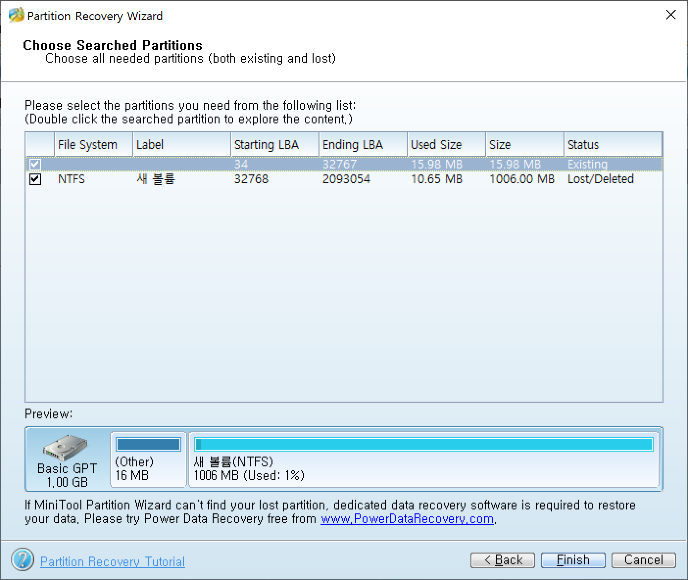 이런 구조이기 때문에, 파티션 테이블을 완전히 삭제한 후 재구축 한 상태라도 파티션 테이블을 복구할 수 있다면 모든 파일이 그대로 남아있게 된다!