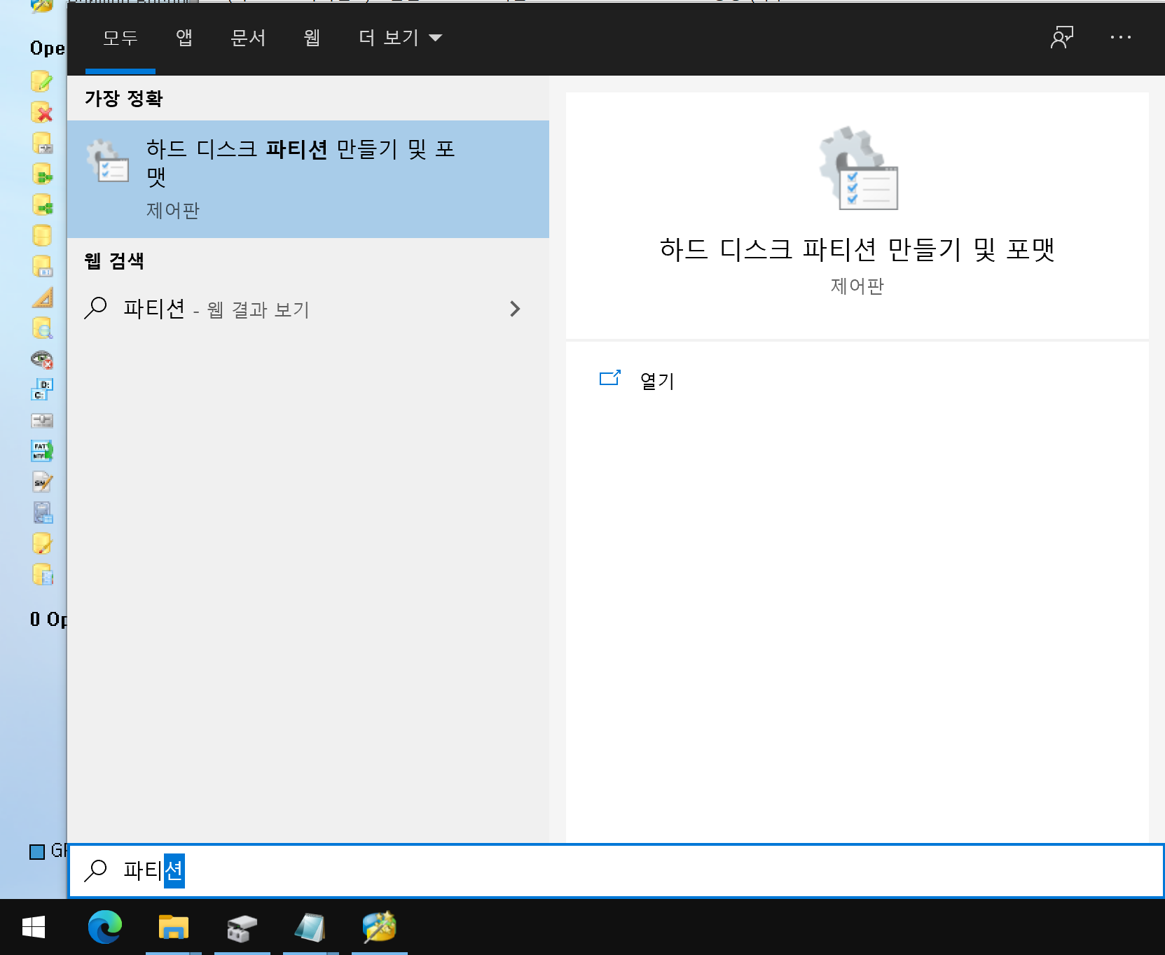 '하드 디스크 파티션 만들기 및 포맷' 실행