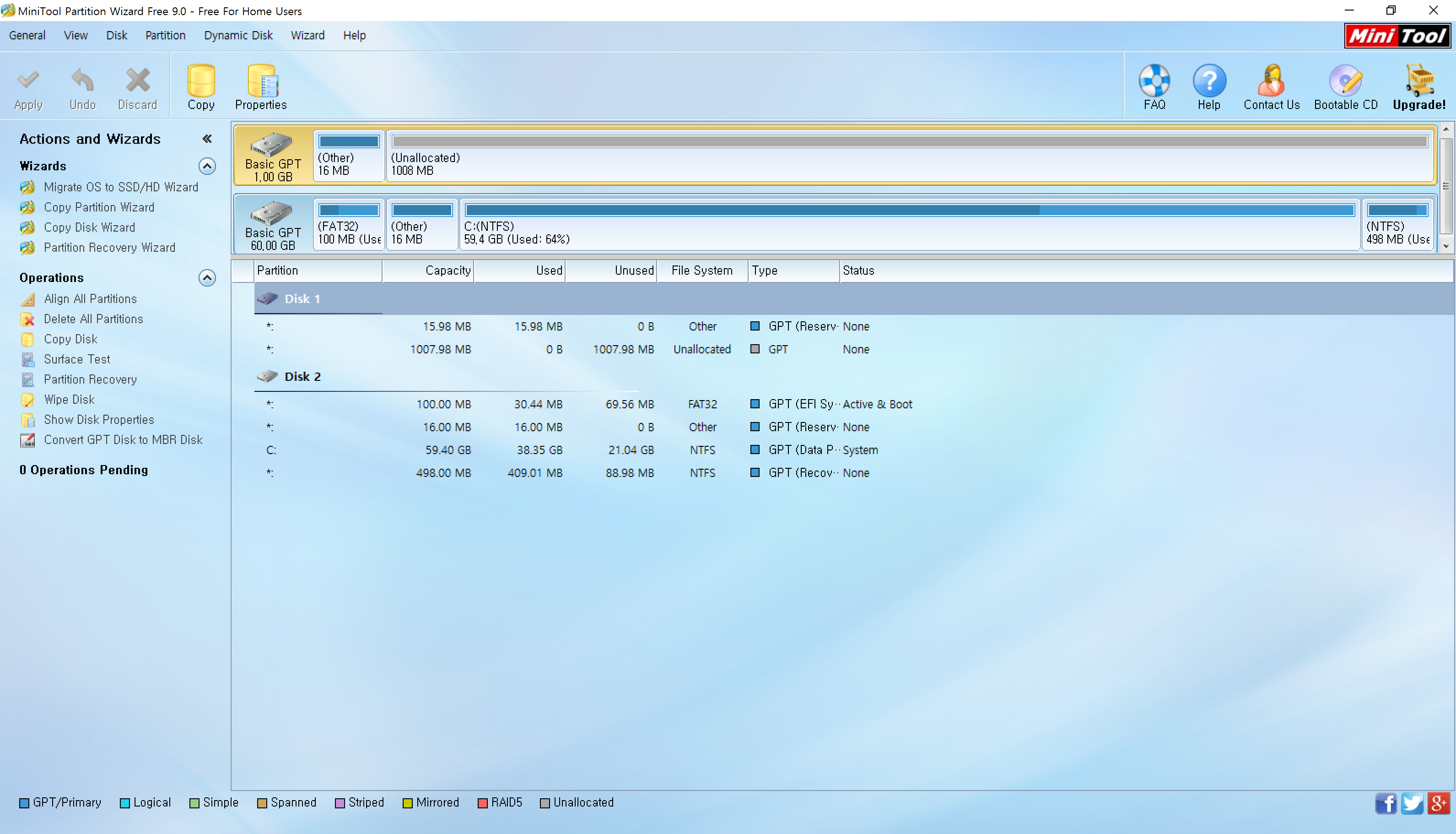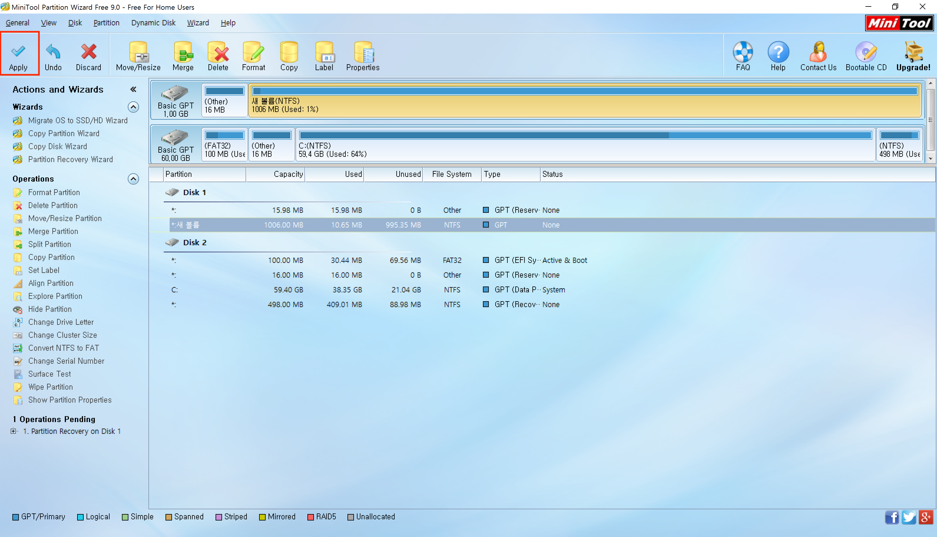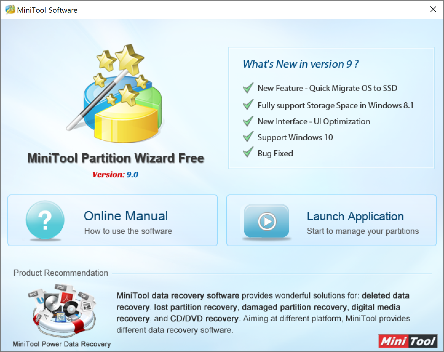 대표적으로 MiniTool Partition Wizard가 있다. 현재 13.5 버전까지 출시되었지만, 파티션 복구 기능을 무료로 사용할 수 있는 버전은 MiniTool Partition Wizard 9.0이다.